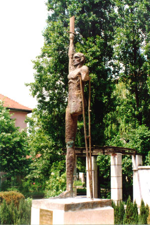 Obra de Constantin Popovici (1938 - 1995), em bronze com a altura de 3,8 m. Situa-se em Bd. Tache Ionescu (Avenida Tache Ionescu), Timisoara. Esta escultura, Învingătorul [O Vencedor] faz parte dos 13 Monumentele Martirilor Timişoarei Decembrie '89 (Monumentos aos Mártires de Timisoara Dezembro de 1989), constituindo um Memorial em conjunto com toda a documentação audio-scripto-visual sobre os atrozes acontecimentos. Este processo memorial e documental é organizado pela Asociaţia Memorialul Revoluţiei 16-22 Decembrie 1989 (Associação Memorial da Revolução 16-22 Dezembro 1989). Os locais das esculturas que compõem este memorial foram os mais fustigados com mortos e feridos. Para esse efeito, foi efectuado um levantamento posterior pela associação acima referida. Os acontecimentos relembrados no memorial reportam a finais de 1989, na sequência da queda dos regimes comunistas no Leste da Europa. A faísca que acendeu a Roménia veio de uma manifestação em 17 de Dezembro de 1989 em Timisoara. O movimento depressa atingiu Bucarest. Em ambas as cidades, os manifestantes foram violentamente reprimidos, originando um elevado número de mortos e feridos. A resistência continuou, e em 19 de Dezembro em Timisoara o exército ficou do lado dos manifestantes. A 21 de Dezembro, Ceausescu e a mulher foram capturados perto de Targoviste. Em 25 de Dezembro foram julgados por um tribunal anónimo, declarados culpados, condenados à morte e executados no local. Não deixa de ser interessante esta representação da imagem do vencedor, como um combatente completamente mutilado nesta escultura dos «Monumentos aos Mártires de Timisoara Dezembro de 19891». |